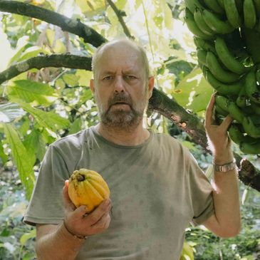 A seasoned permaculture expert and visionary land steward, Günther has spent over 15 years in the Dominican Republic, where he transformed barren cattle land into one of the most thriving regenerative farms in the Caribbean. With over 100,000 fruit trees planted—including 60,000 cacao—his farm is a living model of agroforestry, biodivers